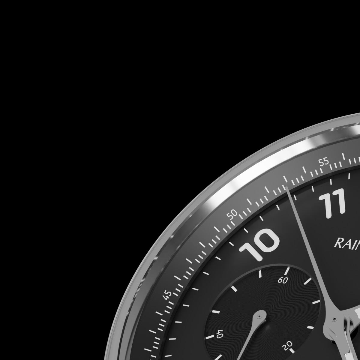 Die aufgesetzten Leuchtziffern sind nur schmal gerahmt und erscheinen weiß. Sie sind wie die Zeiger und der Hintergrund der Datumsscheibe mit Leuchtmasse, was auch eine sehr gute Ablesbarkeit in der Dunkelheit mit sich bringt. Als Antrieb dient das Kaliber SW510 des Schweizer Herstellers Sellita, das fein sandgestrahlt ist und so eine sehr zurückhaltende, technische Anmutung erhält. Dieser Charakter wird von dem hauseigenen Rotor unterstrichen. Wie schon auf dem Zifferblatt abgelesen, ist das Uhrwerk in fünf Lagen reguliert, was hohe Gangpräzision andeutet. Diese Erwartung konnte die Uhr während einer Woche Tragezeit voll erfüllen. Wir registrierten per Abgleich mit einer Funkuhr einen stabilen, täglichen Vorgang von zwei Sekunden. Das ist chronometertauglich. Verpackt ist das Ganze in einem schlichten, aber enorm hochwertigen Edelstahlgehäuse mit 40,5 Millimeter Durchmesser. Ein schmaler Edelstahlrand ums Saphirglas lässt dem Zifferblatt viel Platz, weshalb die Uhr sogar etwas größer erscheint als sie ist. Gehalten wird die Uhr von einem handschuhweichen Lederband, das für einen sehr hohen Tragekomfort sorgt. Das Leder des Bandes stammt von einer Biogerberei im Allgäu und ist in sechs Farben erhältlich. 4400 Euro verlangt Rainer Brand für diesen Chronographen, was kein Schnäppchen ist, wir aber als durchaus angemessen betrachten. Zu kaufen sind diese Uhren bei vielen Uhrmachern, Juwelieren und auch direkt im Spessart, da allerdings nur nach telefonischer Voranmeldung. (Text: Martin Häussermann)