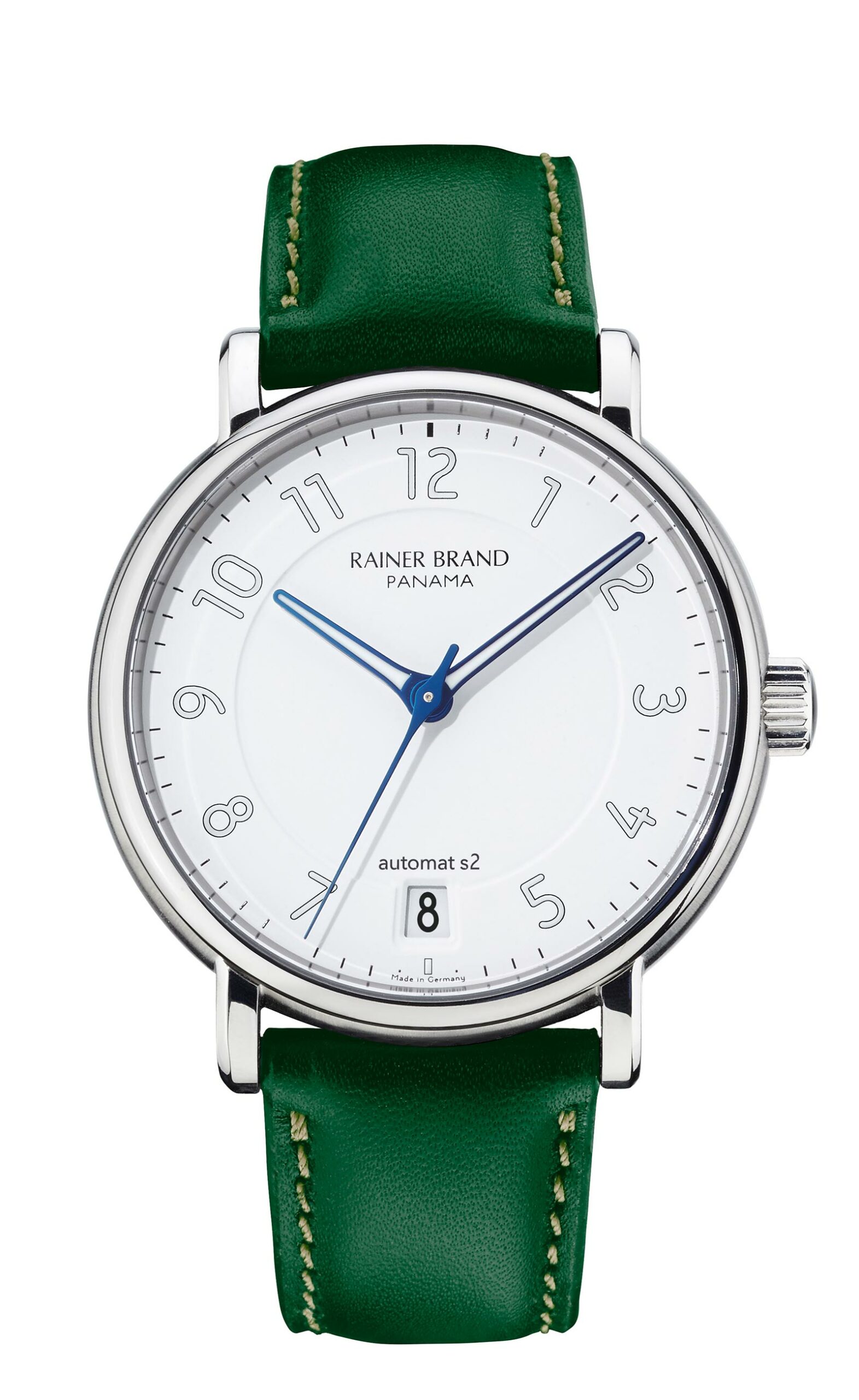 Lederband mit Dornschließe, optional Faltschließe oder Stahlband erhältlich ⋅ Lederbandfarben Schwarz, Mocca, Marine, Spessartgrün, Cognac oder Hightechmaterial Schwarz